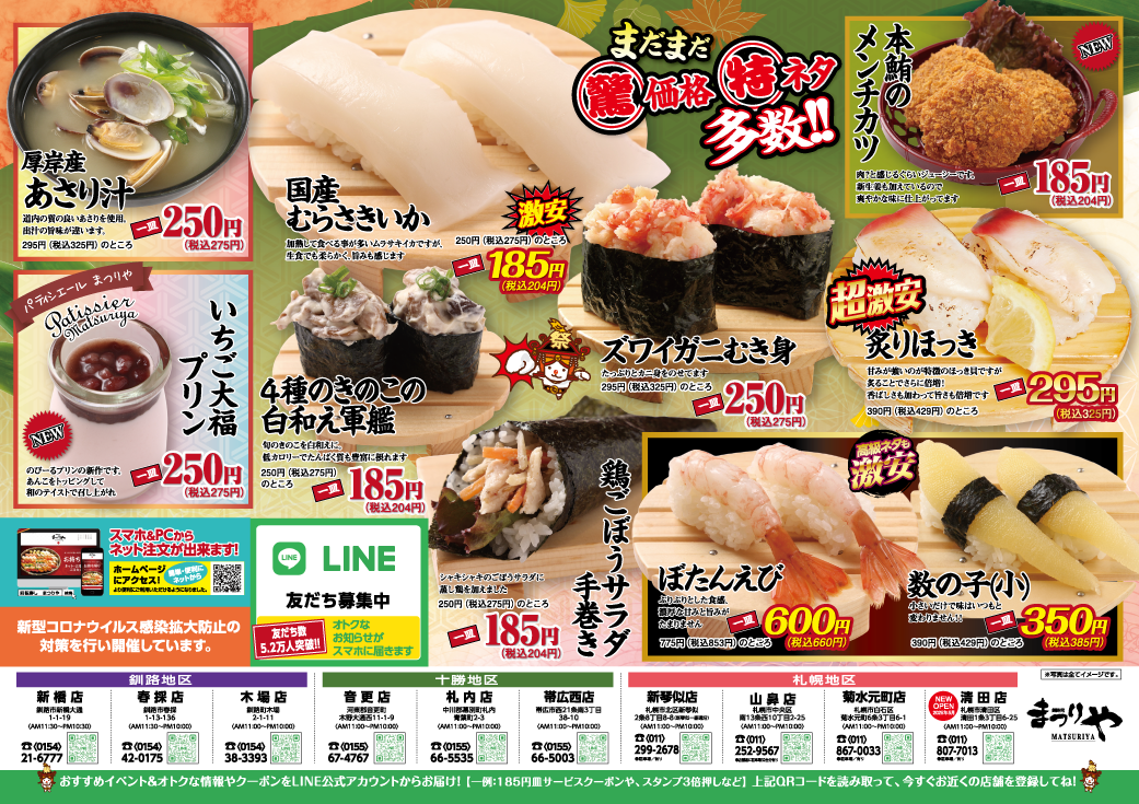 イベントは、釧路・十勝・札幌のまつりや全10店舗で開催いたします。