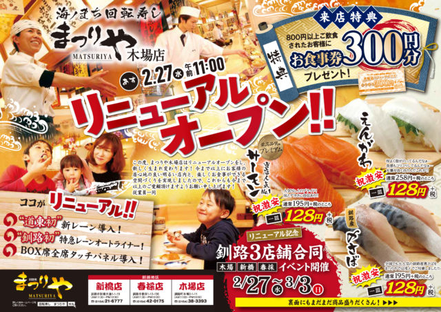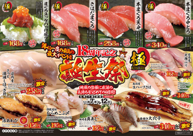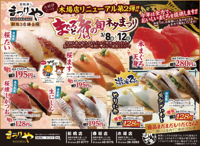 北海道の旬を味わう「回転寿しまつりや」の最新情報をお届け!さらにまつりやでは、四季折々の食材を楽しめる限定イベントを開催しています。春夏秋冬、その季節ならではの新鮮なネタや特別メニューをお寿司で堪能しながら、家族や友人と心あたたまる時間をお過ごしください。