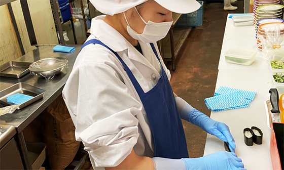 仕込み業務として魚を捌く、野菜のカット、揚げ物・汁物の仕込みと製造、ご飯の炊き込み、シャリ作り、軍艦・巻き寿司の仕込みと製造を行います。調理では料理の盛付や軍艦巻きなどの創作メニューの制作も担当します。接客が苦手な方も活躍できる職種で、裏方として調理に専念できます。